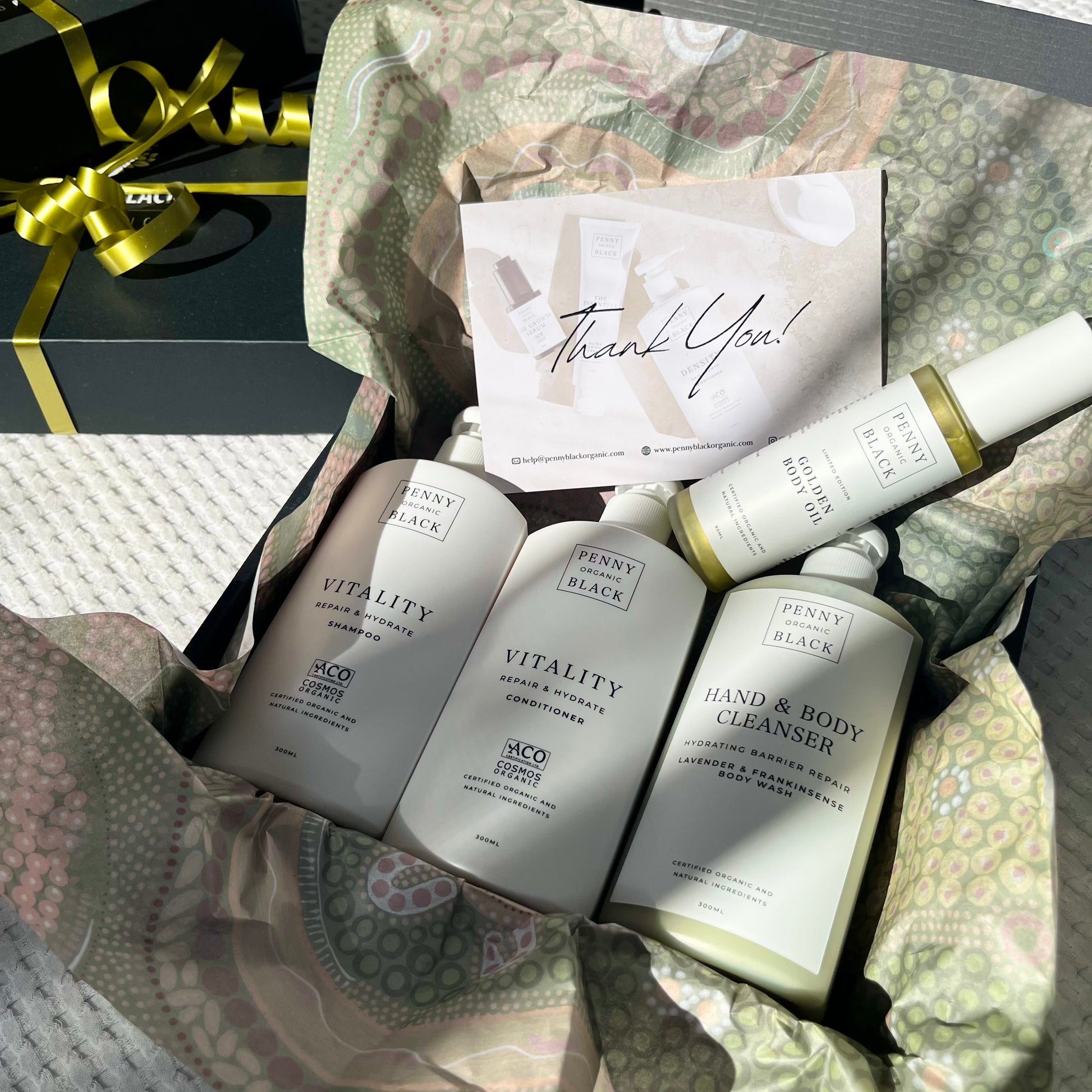 - Golden Body Oil: Apply to damp or dry skin. Allow to absorb before dressing.