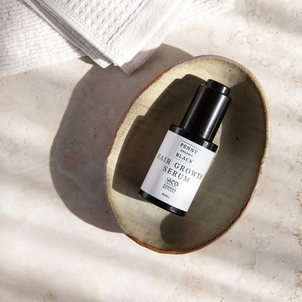 This concentrate hair growth serum helps improve visible hair growth, reduce fallout and gently repairs follicle damage. Using native Australian extracts, Penny Black can offer “true to nature” alternatives to synthetic hair loss solutions – at scalp level. Identifying four major compounds (procyanidin, Quercetin, Kaempferol and EGCG) known to prolong the hair growth phase cycle, reducing inflammation & increasing blood flow to promote the growth of dense, strong and healthy hair. Kaempferol is key as it helps to block Dihydrotestosterone otherwise known as DHT formation, which causes miniaturisation, shrinking of the hair follicle and hair loss.